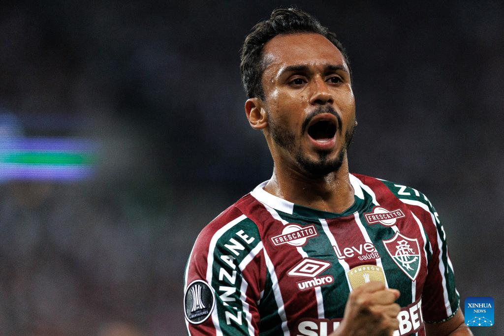 RIO DE JANEIRO, 19 septiembre, 2024 (Xinhua) -- Imagen del 18 de septiembre de 2024 del jugador Lima, de Fluminense de Brasil, festejando su anotación durante el partido de ida correspondiente a los cuartos de final de la Copa Conmebol Libertadores, ante Atlético Mineiro de Brasil, celebrado en el Estadio Maracaná, en Río de Janeiro, Brasil. (Xinhua/Claudia Martini)