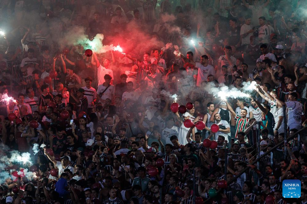 RIO DE JANEIRO, 19 septiembre, 2024 (Xinhua) -- Imagen del 18 de septiembre de 2024 de aficionados de Fluminense de Brasil reaccionando previo al partido de ida correspondiente a los cuartos de final de la Copa Conmebol Libertadores, ante Atlético Mineiro de Brasil, celebrado en el Estadio Maracaná, en Río de Janeiro, Brasil. (Xinhua/Claudia Martini)