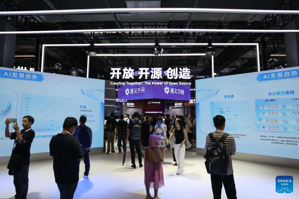 HANGZHOU, 19 septiembre, 2024 (Xinhua) -- Personas visitan la Conferencia APSARA 2024, en Hangzhou, en la provincia de Zhejiang, en el este de China, el 19 de septiembre de 2024. La Conferencia APSARA 2024 de tres días de duración se inauguró aquí el jueves con tres salones temáticos que muestran las últimas tecnologías y productos. (Xinhua/Huang Zongzhi)