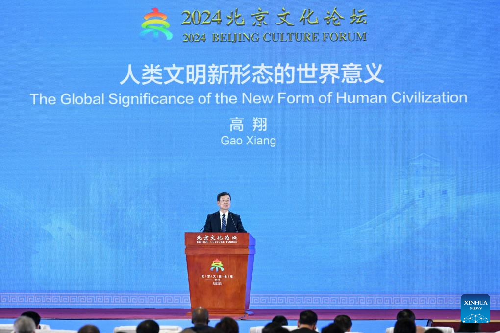 BEIJING, 19 septiembre, 2024 (Xinhua) -- Gao Xiang, presidente de la Academia China de Ciencias Sociales, pronuncia un discurso en el foro principal del Foro Cultural de Beijing 2024, en Beijing, capital de China, el 19 de septiembre de 2024. El Foro Cultural de Beijing 2024, con el tema de "Fortalecer los Intercambios Culturales para el Progreso Común", se inauguró el jueves en Beijing. (Xinhua/Zhang Cheng)