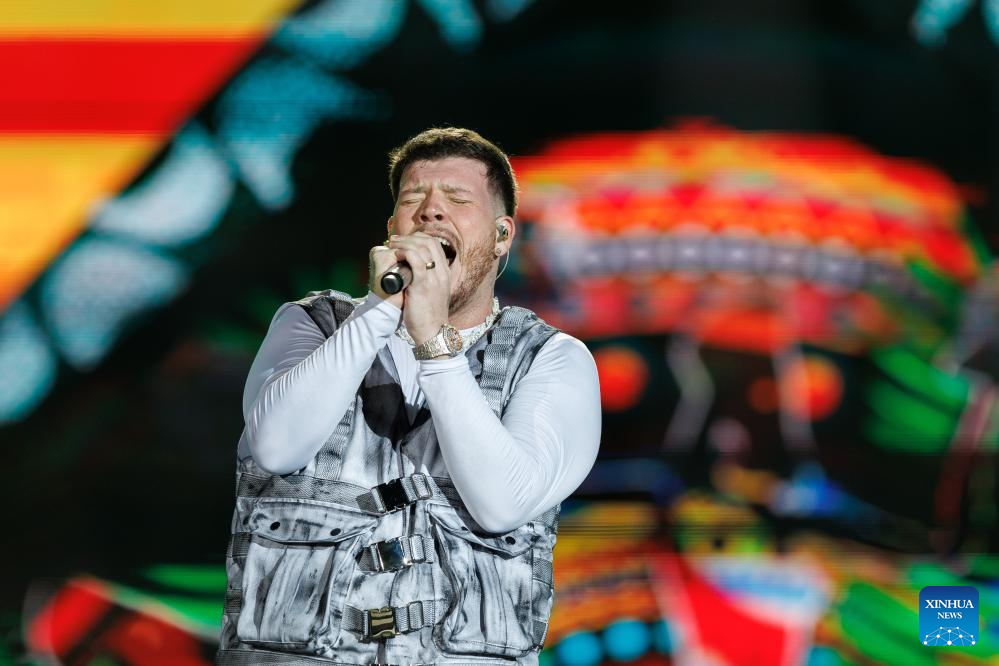 RIO DE JANEIRO, 20 septiembre, 2024 (Xinhua) -- Imagen del 19 de septiembre de 2024 del cantante Ferrugem realizando una presentación durante el festival de música "Rock in Rio 2024", en Río de Janeiro, Brasil. (Xinhua/Claudia Martini)
