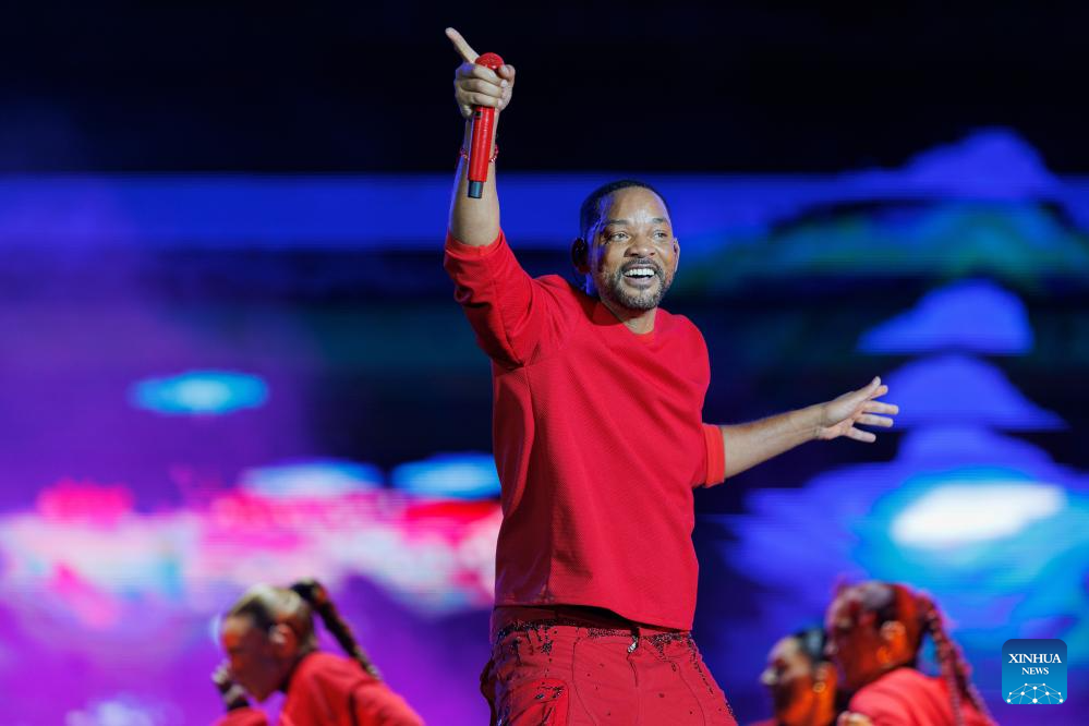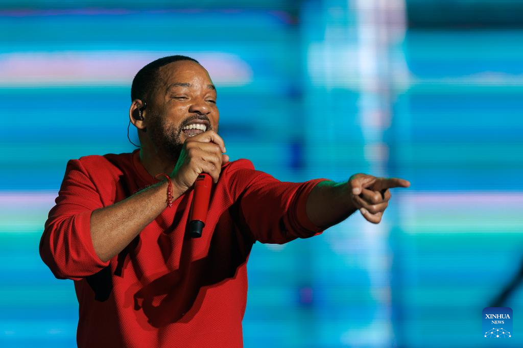 RIO DE JANEIRO, 20 septiembre, 2024 (Xinhua) -- Imagen del 19 de septiembre de 2024 del cantante y actor Will Smith realizando una presentación durante el festival de música "Rock in Rio 2024", en Río de Janeiro, Brasil. (Xinhua/Claudia Martini)