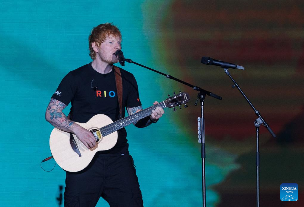 RIO DE JANEIRO, 20 septiembre, 2024 (Xinhua) -- Imagen del 19 de septiembre de 2024 del cantante Ed Sheeran realizando una presentación durante el festival de música "Rock in Rio 2024", en Río de Janeiro, Brasil. (Xinhua/Claudia Martini)