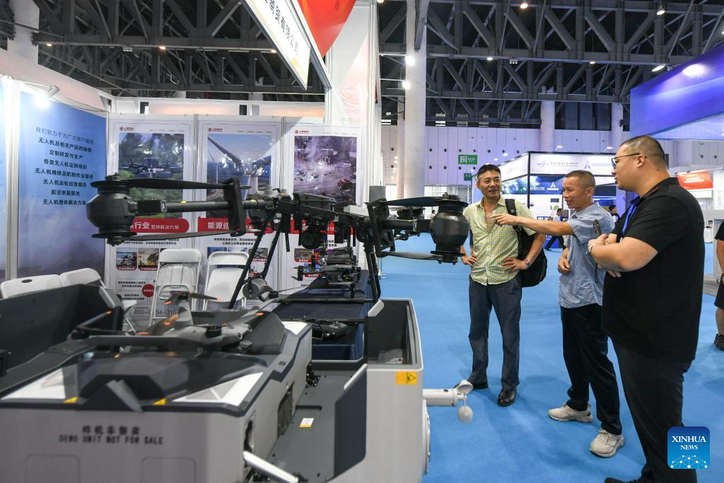 CHENGDU, 20 septiembre, 2024 (Xinhua) -- Visitantes observan productos de vehículos aéreos no tripulados (UAV, por sus siglas en inglés) en la Exposición Internacional de Equipos y Servicios de Baja Altitud de Chengdu 2024, en Chengdu, en la provincia de Sichuan, en el suroeste de China, el 20 de septiembre de 2024. La Conferencia Internacional sobre Asociación Económica de Baja Altitud de China (Chengdu) 2024 y la Exposición Internacional de Equipos y Servicios de Baja Altitud de Chengdu 2024 se celebran aquí del 19 al 21 de septiembre, mostrando tecnologías de vanguardia y nuevos productos en la economía de baja altitud. (Xinhua/Tang Wenhao)