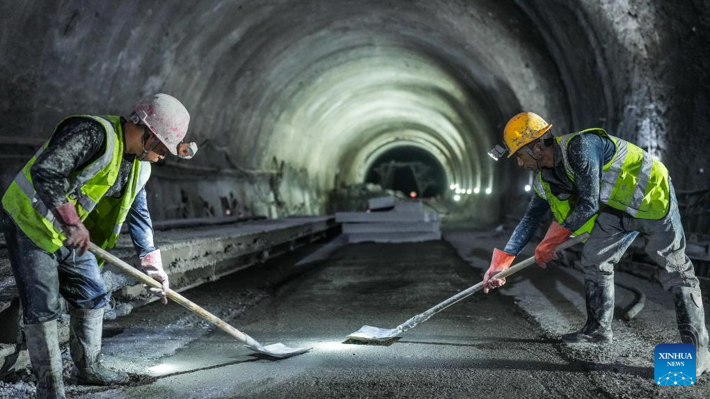 DAOZHEN, 20 septiembre, 2024 (Xinhua) -- Imagen del 19 de septiembre de 2024 de trabajadores laborando en el túnel de Zimuyan a lo largo de la autopista Wulong-Daozhen, en la provincia de Guizhou, en el suroeste de China. La construcción en ambas direcciones del túnel de Zimuyan de 7.407 metros de longitud, que forma parte de la autopista Wulong-Daozhen, ha finalizado el jueves. (Xinhua/Tao Liang)