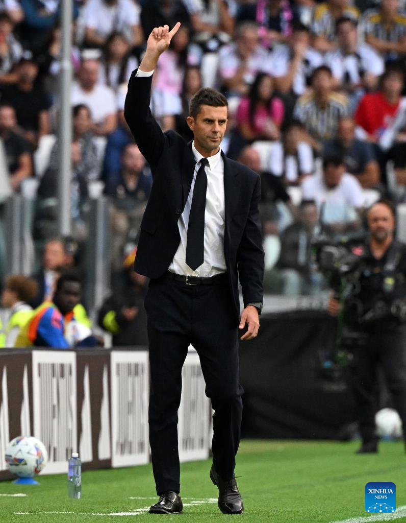 TURÍN, 22 septiembre, 2024 (Xinhua) -- Imagen del 21 de septiembre de 2024 del director técnico Thiago Motta, de Juventus, gesticulando durante un partido correspondiente a la Serie A, entre Juventus y Nápoles, en Turín, Italia. (Xinhua/Alberto Lingria)