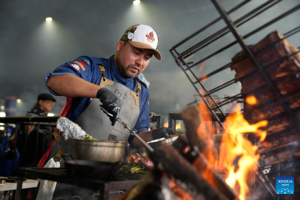 MONTEVIDEO, 22 septiembre, 2024 (Xinhua) -- Asadores participan durante el Mundial de Asadores celebrado en Montevideo, capital de Uruguay, el 22 de septiembre de 2024. (Xinhua/Nicolás Celaya)