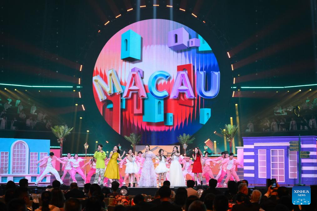 MACAO, 23 septiembre, 2024 (Xinhua) -- Imagen del 22 de septiembre de 2024 de una escena durante el Concierto de Cine en el Area de la Gran Bahía 2024, en Macao, en el sur de China. El evento anual, que coincide con el Festival del Medio Otoño, transmite las tradiciones chinas y el diseño artístico de vanguardia. (Xinhua/Cheong Kam Ka)