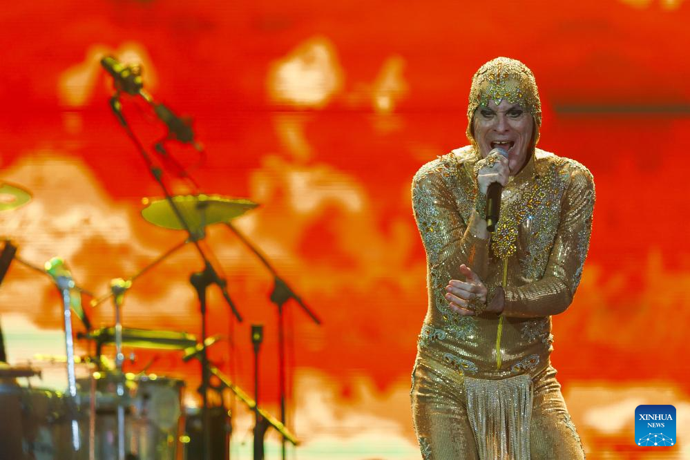 RIO DE JANEIRO, 23 septiembre, 2024 (Xinhua) -- Imagen del 22 de septiembre de 2024 del cantante Ney Matogrosso realizando una presentación durante el festival de música "Rock in Rio 2024", en Río de Janeiro, Brasil. (Xinhua/Claudia Martini)
