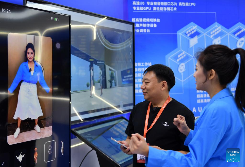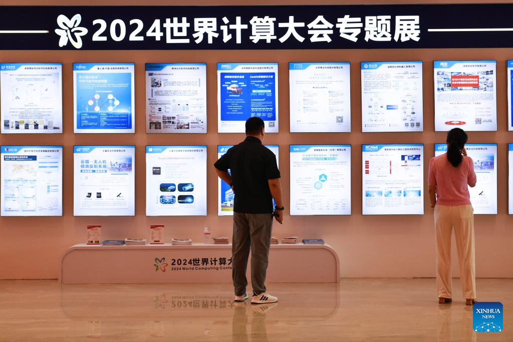 CHANGSHA, 24 septiembre, 2024 (Xinhua) -- Personas visitan una exposición durante la Conferencia Mundial de Computación 2024, en Changsha, en la provincia de Hunan, en el centro de China, el 24 de septiembre de 2024. Bajo el lema "Calculando el Mundo para Crear una Nueva Era -- Calculando las Nuevas Fuerzas Productivas de Calidad", la conferencia se inauguró el martes en Changsha. (Xinhua/Chen Zhenhai)