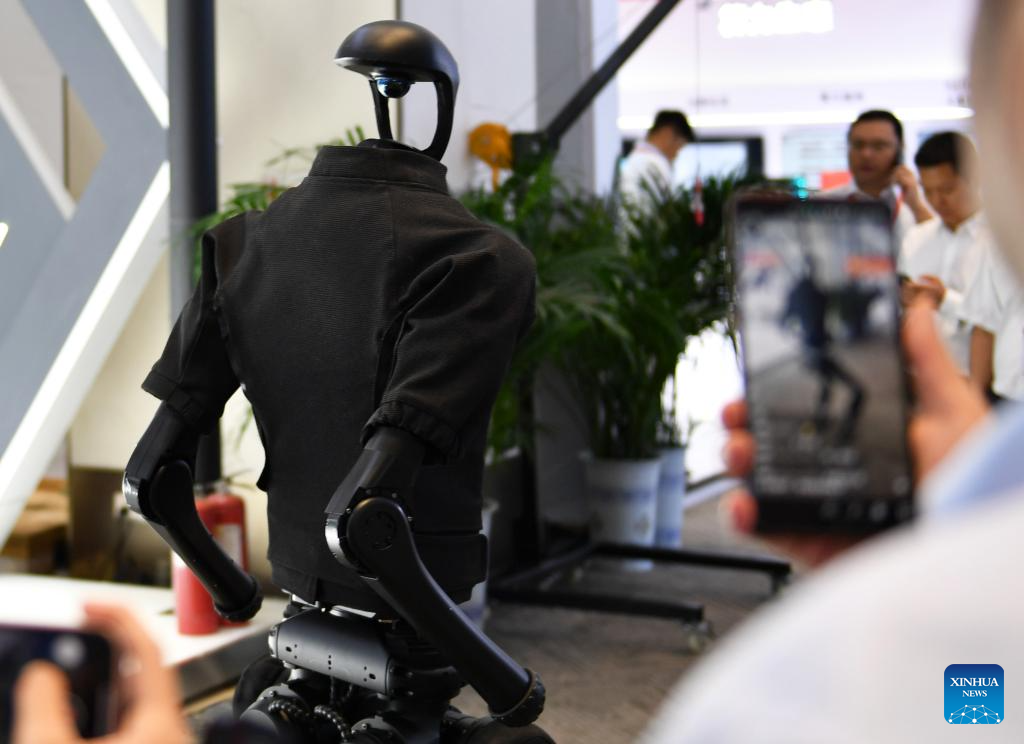 CHANGSHA, 24 septiembre, 2024 (Xinhua) -- Visitantes observan un robot en exhibición durante la Conferencia Mundial de Computación 2024, en Changsha, en la provincia de Hunan, en el centro de China, el 24 de septiembre de 2024. Bajo el lema "Calculando el Mundo para Crear una Nueva Era -- Calculando las Nuevas Fuerzas Productivas de Calidad", la conferencia se inauguró el martes en Changsha. (Xinhua/Chen Zhenhai)
