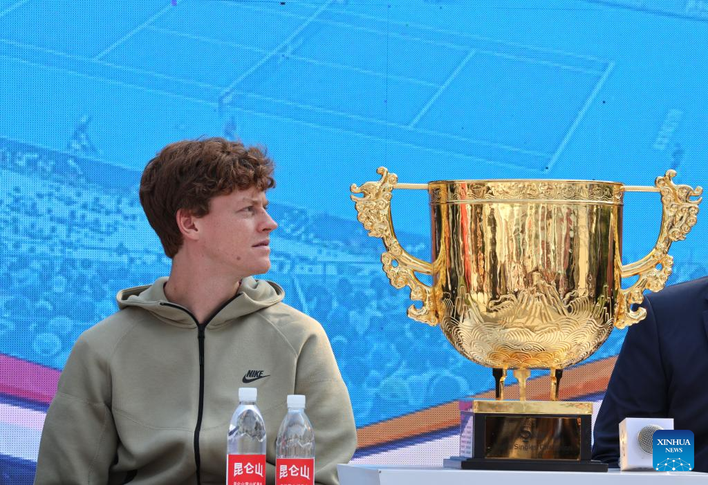 BEIJING, 24 septiembre, 2024 (Xinhua) -- Jannik Sinner, de Italia, asiste al sorteo de individuales masculinos del torneo de tenis Abierto de China 2024, en Beijing, capital de China, el 24 de septiembre de 2024. (Xinhua/Zhang Chen)