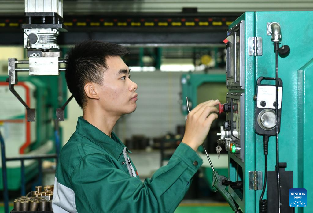 CANGZHOU, 25 septiembre, 2024 (Xinhua) -- Imagen del 24 de septiembre de 2024 de un trabajador en una empresa que produce herramientas de prevención de explosiones, en Botou, en la provincia de Hebei, en el norte de China. Como una de las antiguas bases industriales del centro-sur de Hebei, Botou es conocida como el "origen de la industria de la fundición" del país, hogar de 322 empresas de fundición y con una producción anual de 24.7 billones de yuanes (aproximadamente 3.52 billones de dólares estadounidenses) por parte de los actores agrupados allí. En los últimos años se ha visto cómo sus procesos de fabricación se han convertido en ecológicos y respetuosos con el medio ambiente. (Xinhua/Mu Yu)