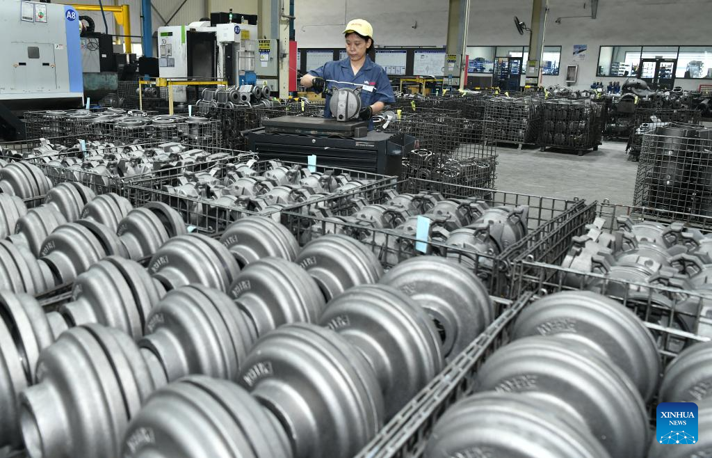 CANGZHOU, 25 septiembre, 2024 (Xinhua) -- Imagen del 24 de septiembre de 2024 de una trabajadora comprobando la calidad del producto en una empresa de fundición, en Botou, en la provincia de Hebei, en el norte de China. Como una de las antiguas bases industriales del centro-sur de Hebei, Botou es conocida como el "origen de la industria de la fundición" del país, hogar de 322 empresas de fundición y con una producción anual de 24.7 billones de yuanes (aproximadamente 3.52 billones de dólares estadounidenses) por parte de los actores agrupados allí. En los últimos años se ha visto cómo sus procesos de fabricación se han convertido en ecológicos y respetuosos con el medio ambiente. (Xinhua/Mu Yu)