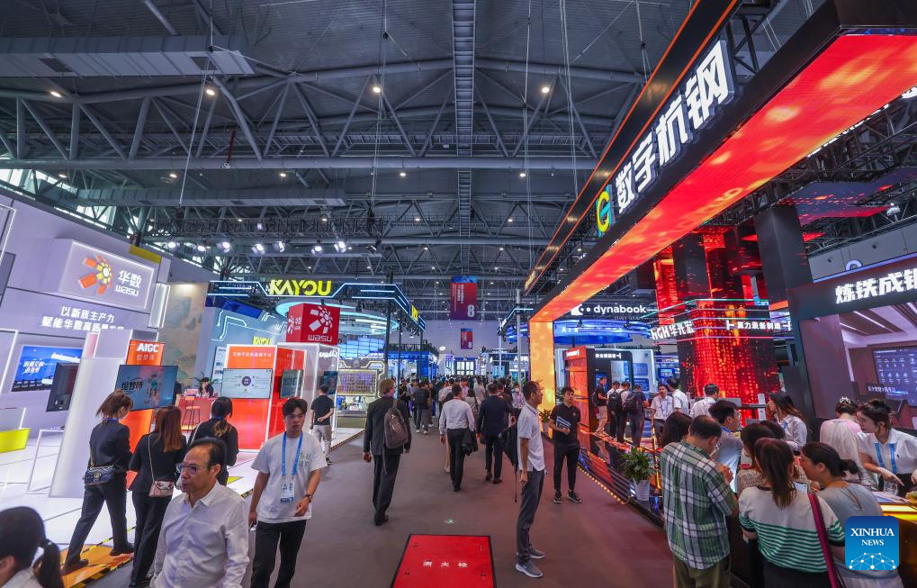 HANGZHOU, 25 septiembre, 2024 (Xinhua) -- Personas visitan la III Exposición Global de Comercio Digital, en Hangzhou, provincia de Zhejiang, en el este de China, el 25 de septiembre de 2024. La III Exposición Global de Comercio Digital, inaugurada el miércoles en Hangzhou, presenta las más recientes innovaciones tecnológicas y el desarrollo empresarial del sector de la economía digital. Con el tema "Comercio digital, acceso global", la edición de este año ha atraído a más de 1.500 empresas nacionales y extranjeras, entre las cuales, una cifra superior a 300 son compañías internacionales. Igualmente, el número de compradores inscritos para el evento sobrepasa los 30.000 y más de 6.000 de ellos proceden de regiones y países extranjeros. (Xinhua/Xu Yu)