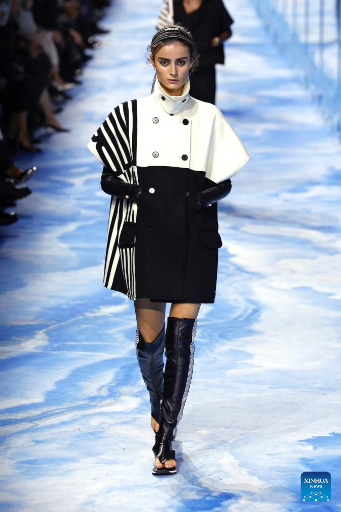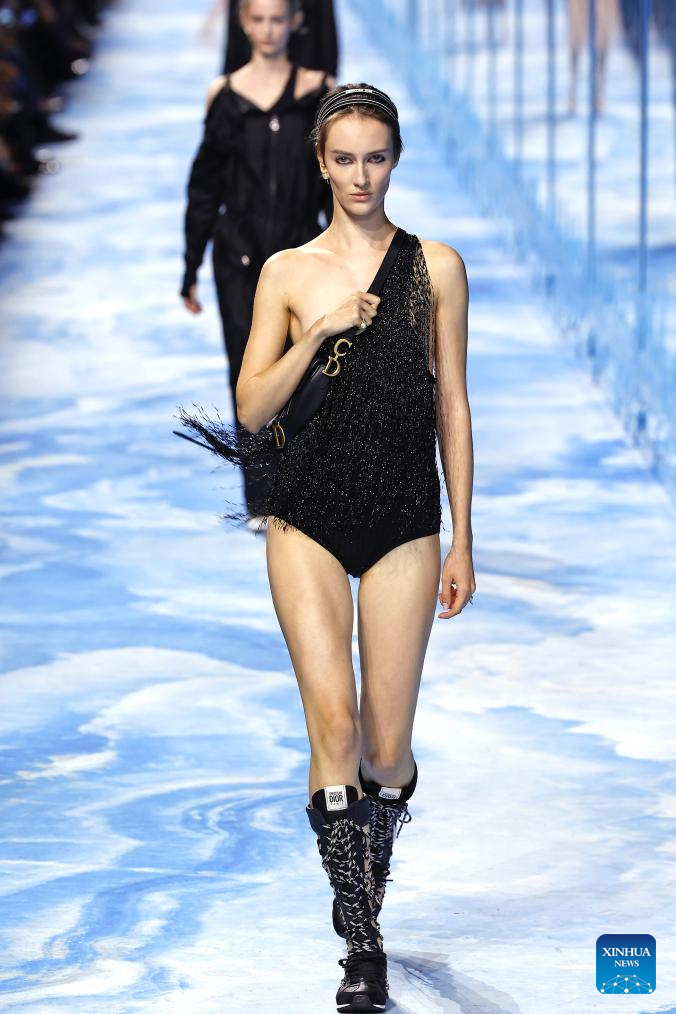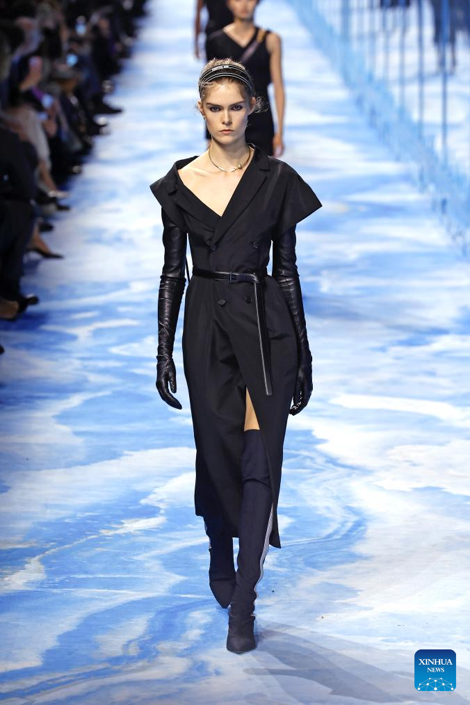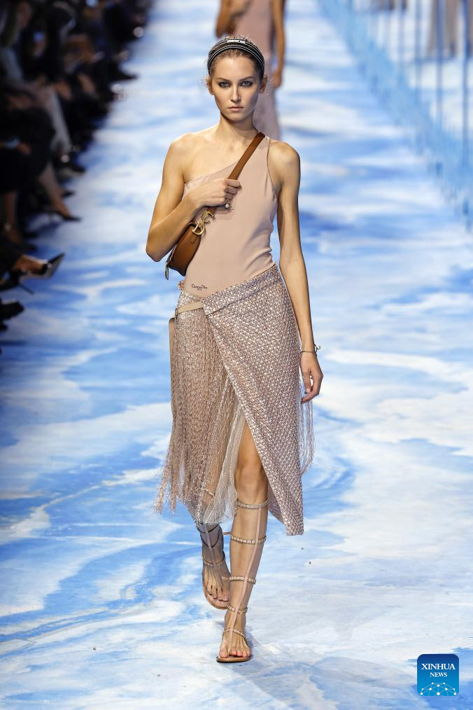 PARIS, 25 septiembre, 2024 (Xinhua) -- Imagen del 24 de septiembre de 2024 de una modelo presentando una creación de las colecciones Listo para Usar Primavera/Verano 2025 de la casa de moda francesa Christian Dior durante la Semana de la Moda de París, en París, Francia. (Xinhua/MeetEurope)