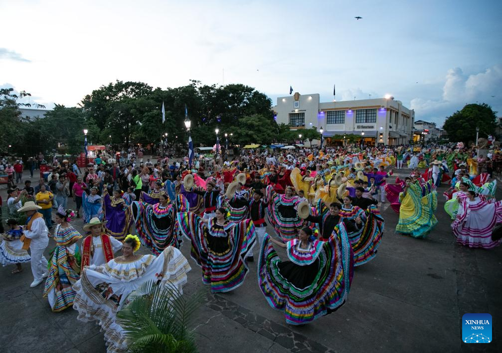 LEON, 25 septiembre, 2024 (Xinhua) -- Imagen del 23 de septiembre de 2024 de personas participando en un desfile, en León, Nicaragua. León Viejo fue construido en 1524. Fue dañado por erupciones volcánicas y terremotos y posteriormente fue trasladado a una nueva ubicación. Ahora León es la segunda ciudad más grande de Nicaragua y alberga dos Sitios Patrimonio de la Humanidad: las Ruinas de León Viejo y la Catedral de León. (Xinhua/Li Mengxin)