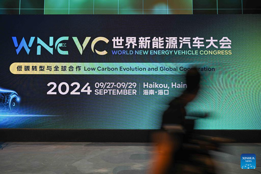 HAIKOU, 27 septiembre, 2024 (Xinhua) -- Imagen del 27 de septiembre de 2024 de una escena en el Congreso Mundial de Vehículos de Nueva Energía 2024 (WNEVC, por sus siglas en inglés), en Haikou, en la provincia de Hainan, en el sur de China. El WNEVC 2024 comenzó el viernes en Haikou. Con el tema "Evolución Baja en Carbono y Cooperación Global", el evento de tres días de duración tiene como objetivo promover el desarrollo sostenible y saludable de los vehículos de nueva energía y fortalecer la cooperación global para lograr conjuntamente el objetivo de neutralidad de carbono. (Xinhua/Pu Xiaoxu)