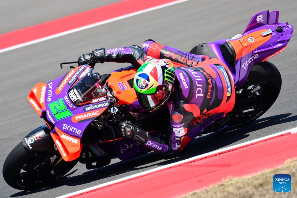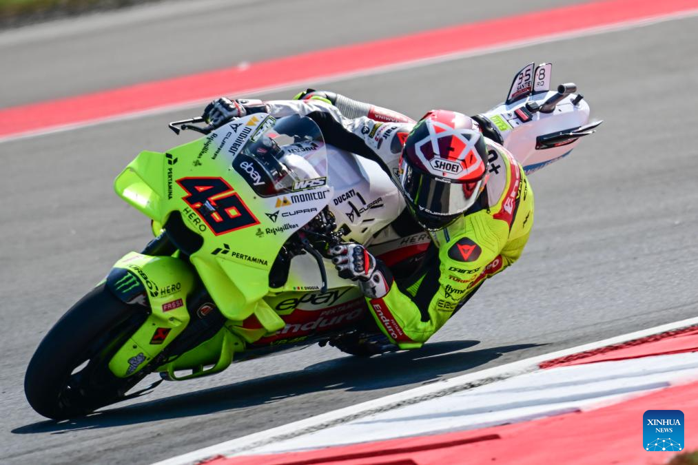 LOMBOK, 27 septiembre, 2024 (Xinhua) -- Fabio Di Giannantonio, del equipo Pertamina Enduro VR46 Racing, compite durante la Práctica de MotoGP del Gran Premio de Indonesia 2024 en el circuito de Pertamina Mandalika, en la isla de Lombok, Indonesia, el 27 de septiembre de 2024. (Xinhua/Veri Sanovri)