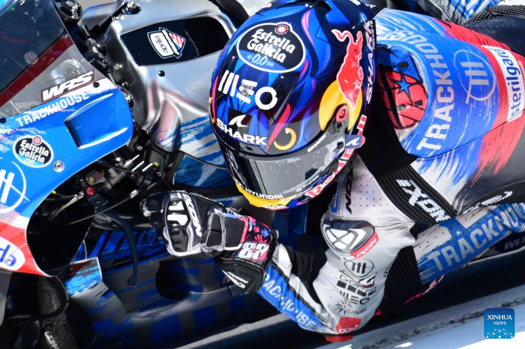 LOMBOK, 27 septiembre, 2024 (Xinhua) -- Miguel Oliveira, de Trackhouse Racing, compite durante la Práctica Libre 1 de MotoGP del Gran Premio de Indonesia 2024 en el circuito de Pertamina Mandalika, en la isla de Lombok, Indonesia, el 27 de septiembre de 2024. (Xinhua/Veri Sanovri)
