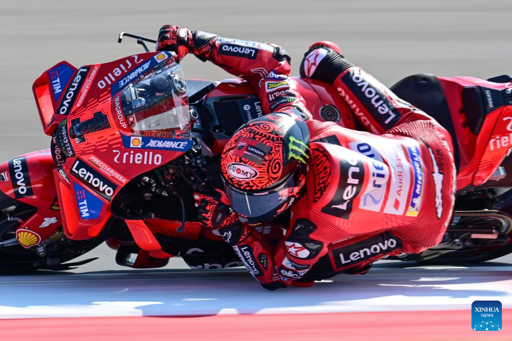 LOMBOK, 27 septiembre, 2024 (Xinhua) -- Francesco Bagnaia, del Equipo Ducati Lenovo, compite durante la Práctica de MotoGP del Gran Premio de Indonesia 2024 en el circuito de Pertamina Mandalika, en la isla de Lombok, Indonesia, el 27 de septiembre de 2024. (Xinhua/Veri Sanovri)