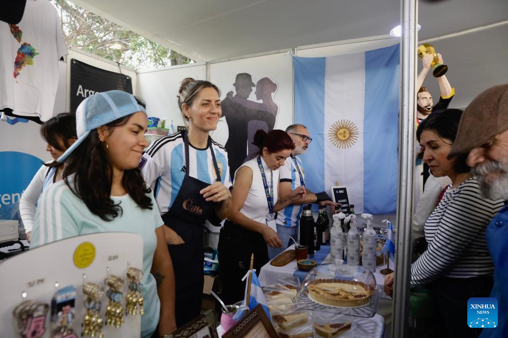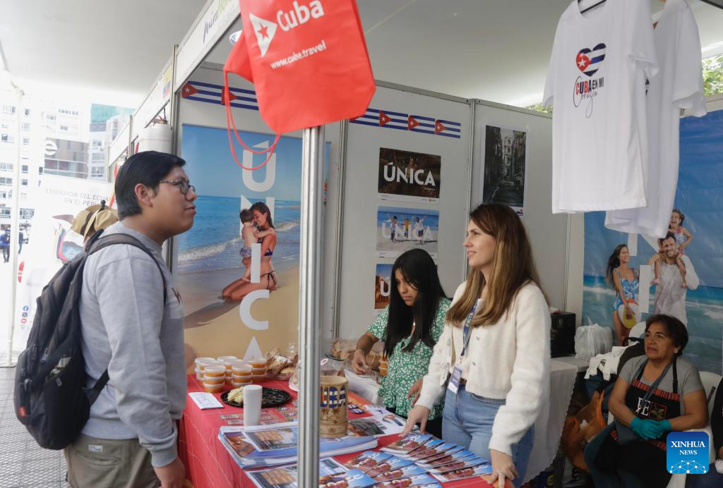 LIMA, 27 septiembre, 2024 (Xinhua) -- Personas visitan el estand de Argentina en la II Feria Internacional de Cultura, Turismo y Educación, en el distrito de Miraflores, en Lima, Perú, el 27 de septiembre de 2024. (Xinhua/Mariana Bazo)