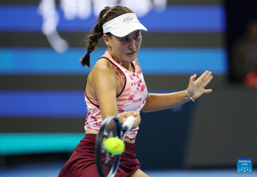 BEIJING, 28 septiembre, 2024 (Xinhua) -- Kamilla Rakhimova devuelve la pelota durante el partido de segunda ronda de individuales femeninos entre Zheng Qinwen, de China y Kamilla Rakhimova, de Rusia, en el torneo de tenis Abierto de China 2024, en Beijing, capital de China, el 28 de septiembre de 2024. (Xinhua/Zhang Chenlin)