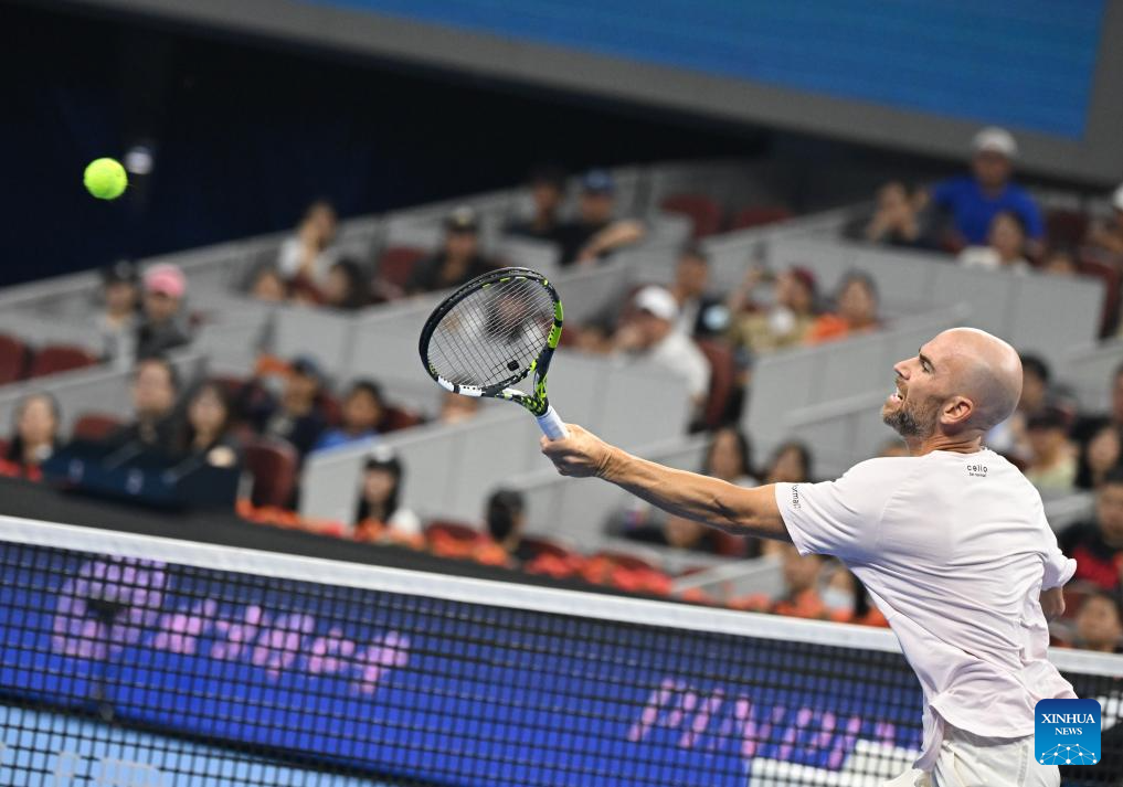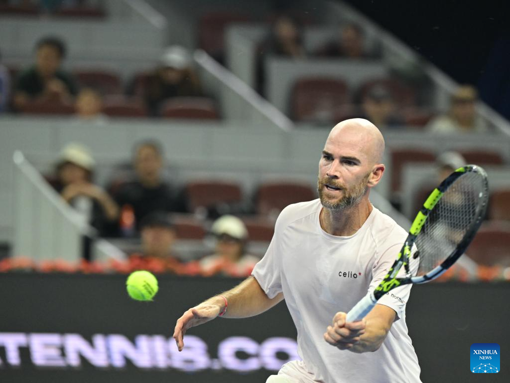 BEIJING, 28 septiembre, 2024 (Xinhua) -- Adrian Mannarino devuelve la pelota durante el partido de segunda ronda de individuales masculinos entre Daniil Medvedev de Rusia y Adrian Mannarino de Francia, en el torneo de tenis Abierto de China 2024, en Beijing, capital de China, el 28 de septiembre de 2024. (Xinhua/Zhang Long)