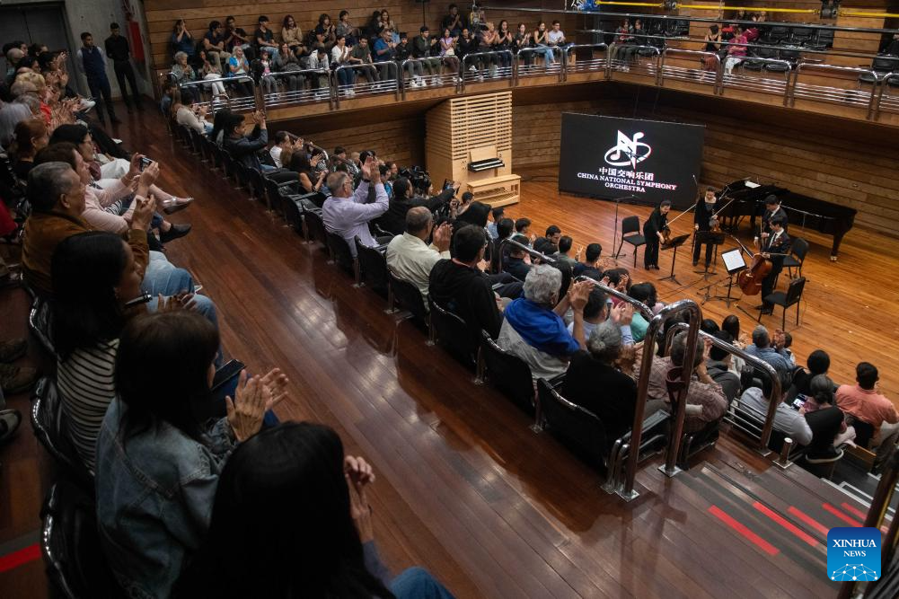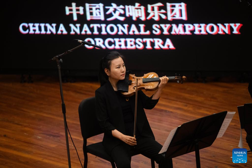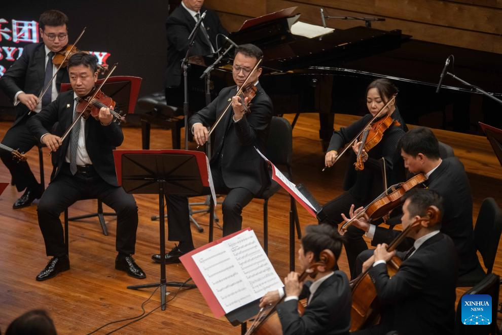 CARACAS, 27 septiembre, 2024 (Xinhua) -- Imagen del 26 de septiembre de 2024 de integrantes de la Orquesta Sinfónica Nacional de China realizando una presentación en el marco del 50º aniversario del establecimiento de relaciones diplomáticas entre China y Venezuela, en el Centro Nacional de Acción Social por la Música, en Caracas, Venezuela. (Xinhua/Marcos Salgado)
