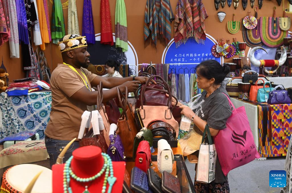 NANNING, 28 septiembre, 2024 (Xinhua) -- Una visitante compra productos de Yemen durante la 21ª Exposición China-ASEAN en el Centro Internacional de Convenciones y Exposiciones de Nanning, en Nanning, en la región autónoma de la etnia zhuang de Guangxi, en el sur de China, el 28 de septiembre de 2024. Productos de los países de la Asociación de Naciones del Sudeste Asiático (ASEAN), como durianes, galletas y palo de rosa, así como de otros países como salchichas rusas y juguetes de peluche de piel de alpaca peruana han gozado de popularidad en la 21ª Exposición China-ASEAN de Nanning. (Xinhua/Lu Boan)