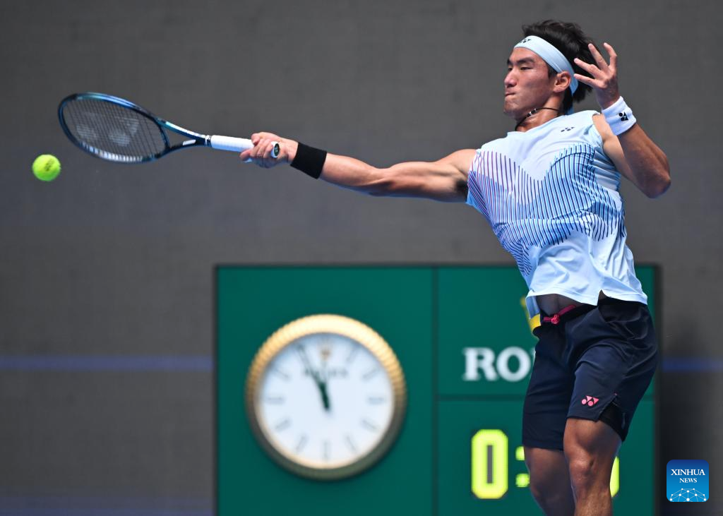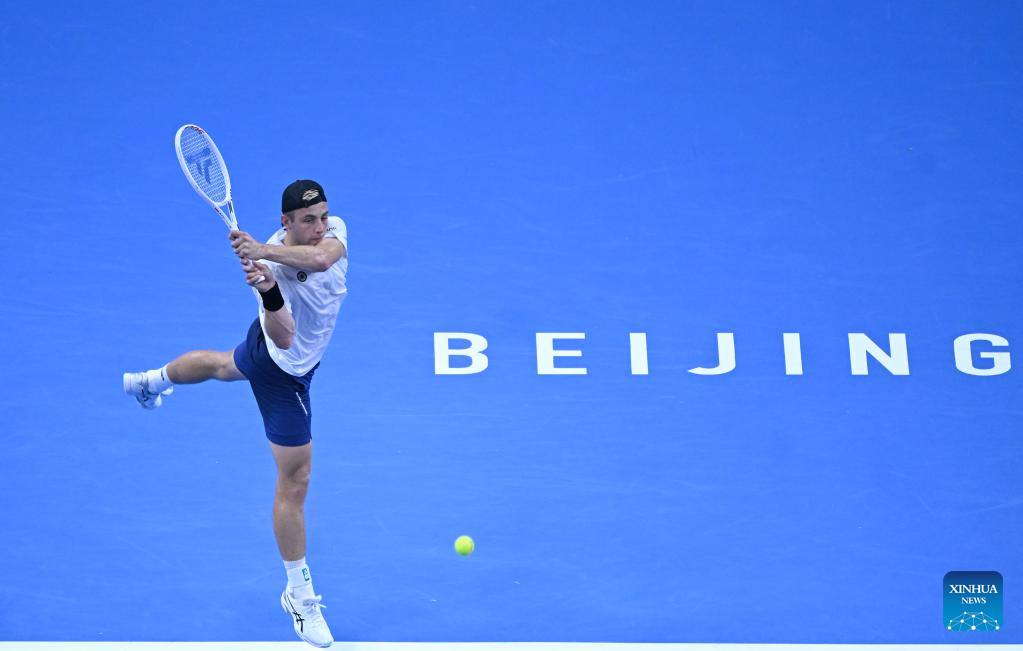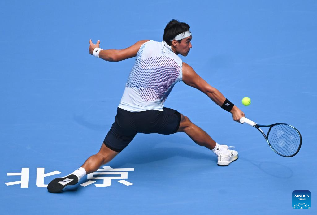 BEIJING, 29 septiembre, 2024 (Xinhua) -- Bu Yunchaokete devuelve la pelota durante el partido de segunda ronda de individuales masculinos entre Bu Yunchaokete, de China, y Lorenzo Musetti, de Italia, en el torneo de tenis Abierto de China 2024, en Beijing, capital de China, el 29 de septiembre de 2024. (Xinhua/Zhang Long)