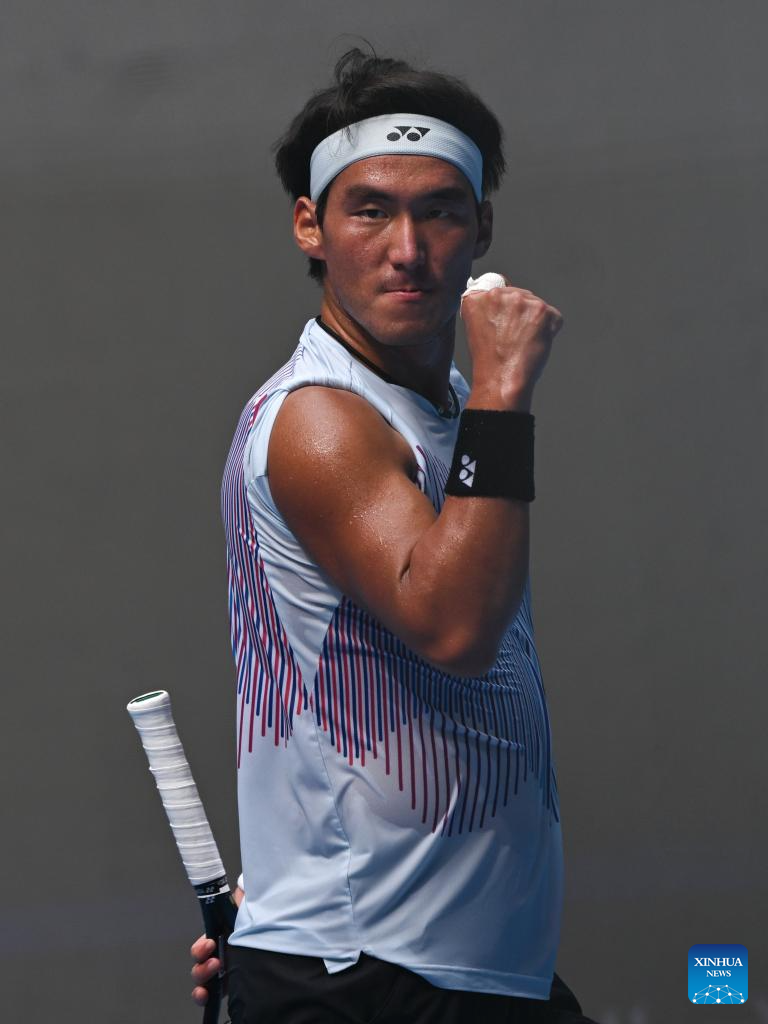 BEIJING, 29 septiembre, 2024 (Xinhua) -- Bu Yunchaokete festeja un punto durante el partido de segunda ronda de individuales masculinos entre Bu Yunchaokete, de China, y Lorenzo Musetti, de Italia, en el torneo de tenis Abierto de China 2024, en Beijing, capital de China, el 29 de septiembre de 2024. (Xinhua/Zhang Long)