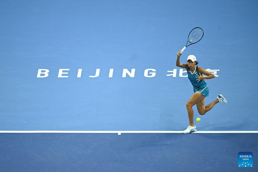 BEIJING, 29 septiembre, 2024 (Xinhua) -- Zhang Shuai devuelve la pelota durante el partido de la tercera ronda de individuales femeninos entre Zhang Shuai, de China, y Greet Minnen, de Bélgica, en el torneo de tenis Abierto de China 2024, en Beijing, capital de China, el 29 de septiembre de 2024. (Xinhua/Zhang Long)