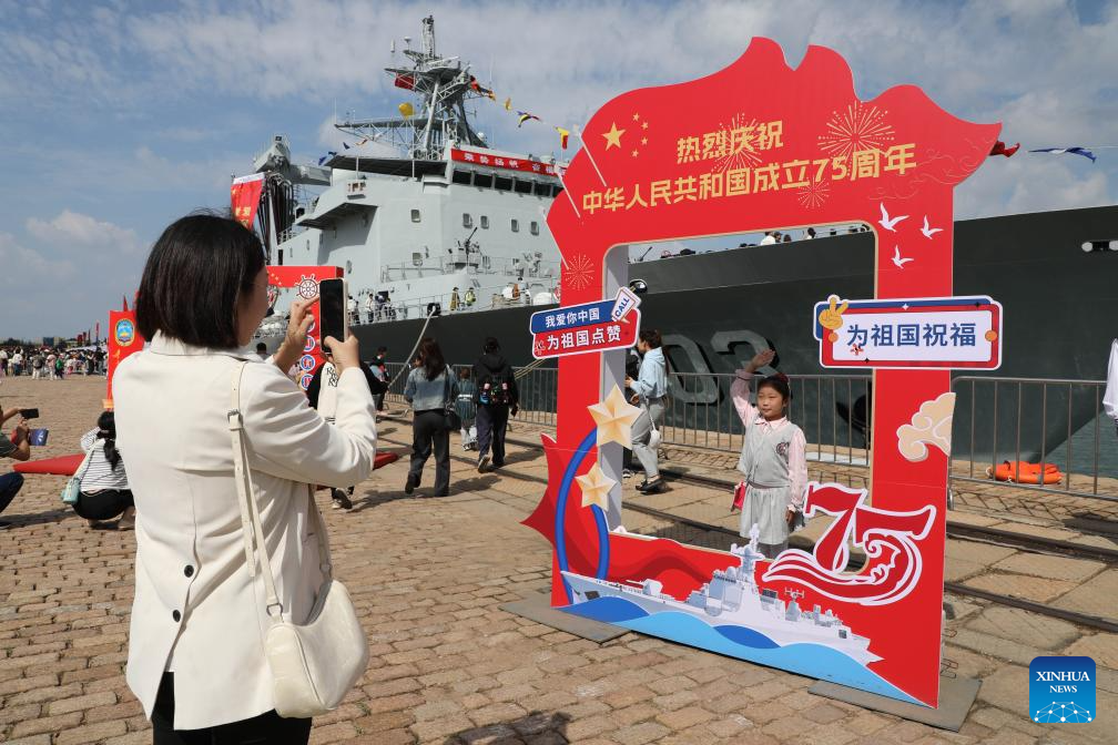 QINGDAO, 2 oct (Xinhua) -- Un grupo de buques navales chinos fueron abiertos a visitas públicas el martes en la ciudad costera de Qingdao, en la provincia de Shandong, como parte de la celebración del 75º aniversario de la fundación de la República Popular China.