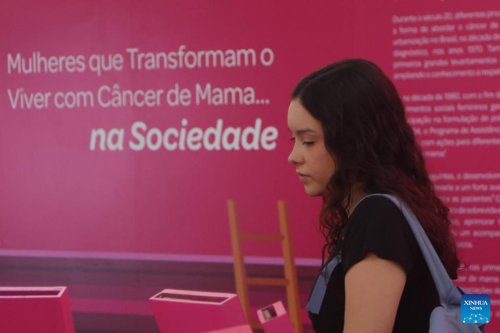 SAO PAULO, 2 octubre, 2024 (Xinhua) -- Una joven visita una instalación implementada en el marco de la campaña Octubre Rosa, que tiene como objetivo crear conciencia y sensibilización sobre el cáncer de mama, en Sao Paulo, Brasil, el 2 de octubre de 2024. (Xinhua/Rahel Patrasso)