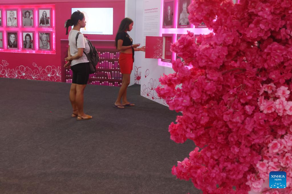 SAO PAULO, 2 octubre, 2024 (Xinhua) -- Mujeres visitan una instalación implementada en el marco de la campaña Octubre Rosa, que tiene como objetivo crear conciencia y sensibilización sobre el cáncer de mama, en Sao Paulo, Brasil, el 2 de octubre de 2024. (Xinhua/Rahel Patrasso)