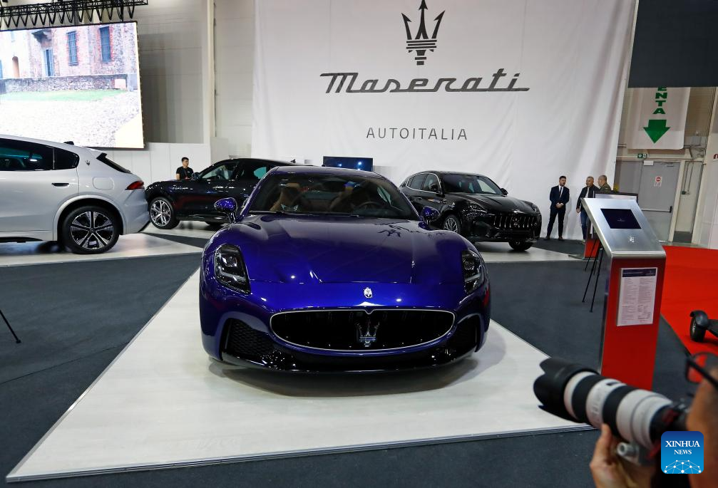 BUCAREST, 2 octubre, 2024 (Xinhua) -- Imagen del 1 de octubre de 2024 de un automóvil Maserati Grecale Folgore exhibido durante el primer día del Salón del Automóvil y Accesorios de Bucarest (SAB), en Bucarest, Rumania. Decenas de vehículos convencionales, híbridos y eléctricos, y más de 600 marcas de los sectores de equipamiento, lavado de automóviles en autoservicio, repuestos, accesorios y servicios se exhiben en la exposición hasta el 6 de octubre. (Xinhua/Cristian Cristel)