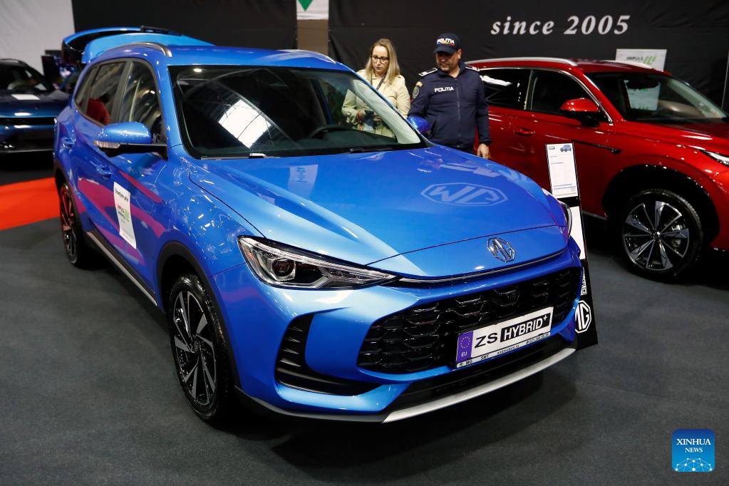 BUCAREST, 2 octubre, 2024 (Xinhua) -- Imagen del 1 de octubre de 2024 de visitantes observando un automóvil MG ZS Hybrid+ del fabricante de automóviles chino SAIC durante el primer día del Salón del Automóvil y Accesorios de Bucarest (SAB), en Bucarest, Rumania. Decenas de vehículos convencionales, híbridos y eléctricos, y más de 600 marcas de los sectores de equipamiento, lavado de automóviles en autoservicio, repuestos, accesorios y servicios se exhiben en la exposición hasta el 6 de octubre. (Xinhua/Cristian Cristel)