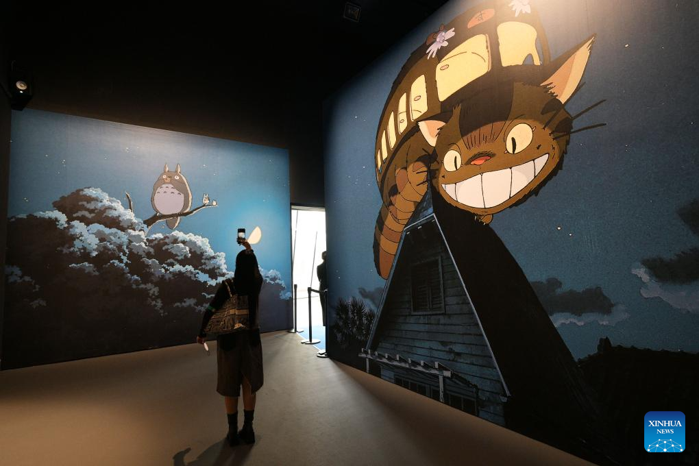 SINGAPUR, 2 octubre, 2024 (Xinhua) -- Una periodista visita la vista previa para los medios de comunicación de la exposición "El Mundo de Studio Ghibli" en el Museo de Arte y Ciencia de Singapur, en Singapur, el 2 de octubre de 2024. La exposición se realizará del 4 de octubre al 2 de febrero de 2025. (Xinhua/Then Chih Wey)