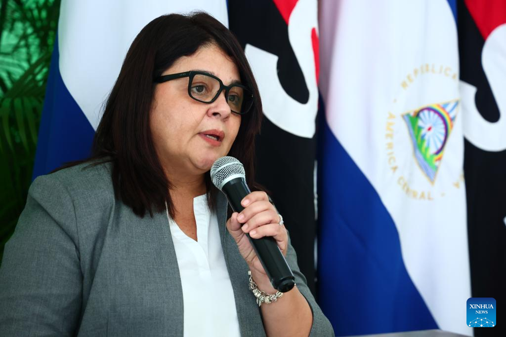 MANAGUA, 3 octubre, 2024 (Xinhua) -- Imagen cedida por el Consejo de Comunicación y Ciudadanía de la República de Nicaragua del 1 de octubre de 2024 de la ministra de Agricultura nicaragüense, Indiana Fuentes, hablando durante el primer Congreso Internacional sobre Caficultura Sostenible y Tendencia del Mercado, en Managua, Nicaragua. La ciudad de Managua fue escenario del primer Congreso Internacional sobre Caficultura Sostenible y Tendencia del Mercado, con la participación de productores, cooperativas, comercializadoras, exportadoras y autoridades del Gobierno de Nicaragua. (Xinhua/Consejo de Comunicación y Ciudadanía de la República de Nicaragua)