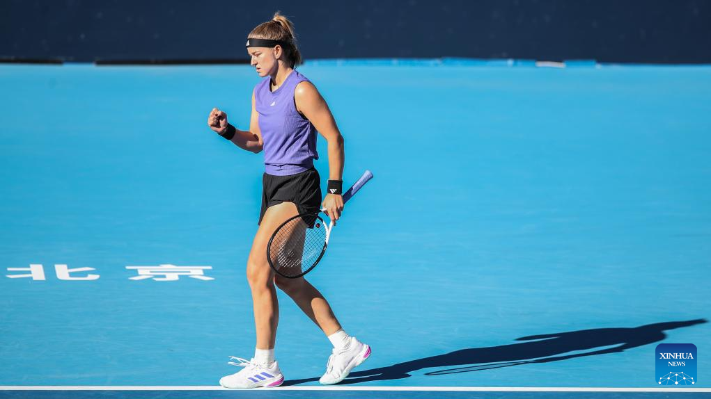 BEIJING, 2 octubre, 2024 (Xinhua) -- Karolina Muchova, de República Checa, festeja un punto durante el partido de octavos de final de individuales femeninos ante Cristina Bucsa, de España, en el torneo de tenis Abierto de China 2024, en Beijing, capital de China, el 2 de octubre de 2024. (Xinhua/Chang Nengjia)