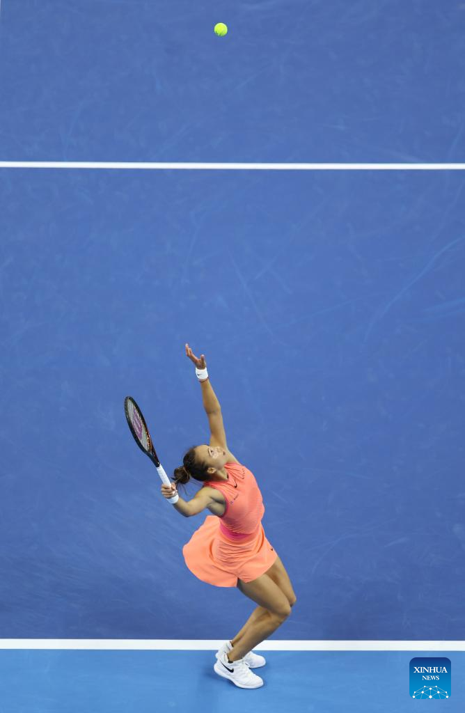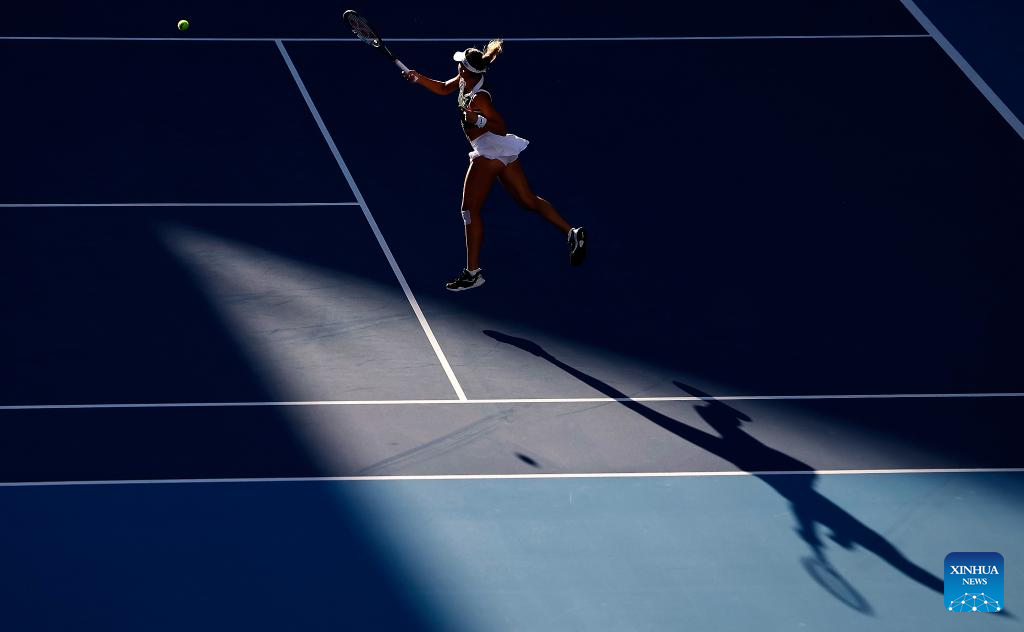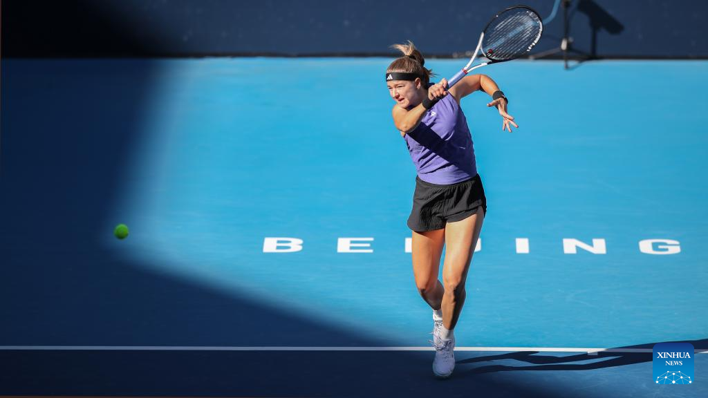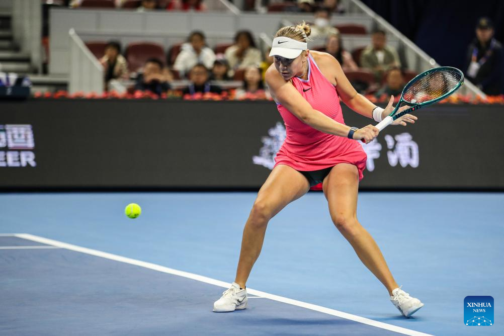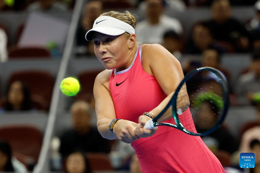 BEIJING, 2 octubre, 2024 (Xinhua) -- Amanda Anisimova devuelve la pelota durante el partido de octavos de final de individuales femeninos entre Amanda Anisimova, de Estados Unidos, y Zheng Qinwen, de China, en el torneo de tenis Abierto de China 2024, en Beijing, capital de China, el 2 de octubre de 2024. (Xinhua/Chang Nengjia)