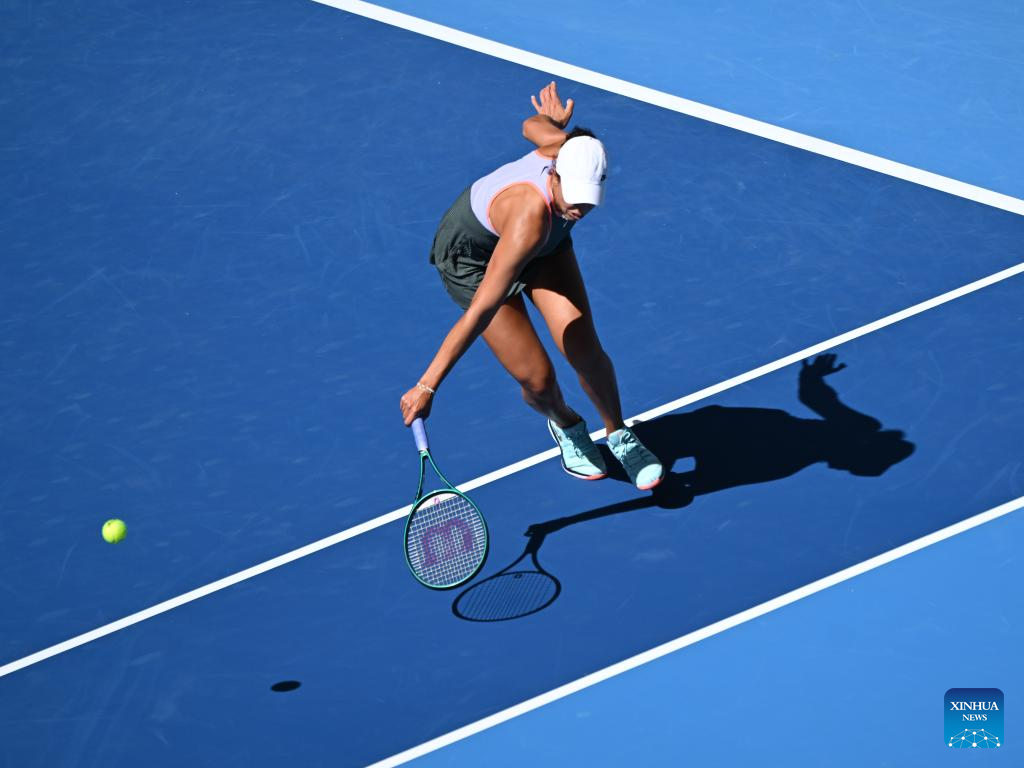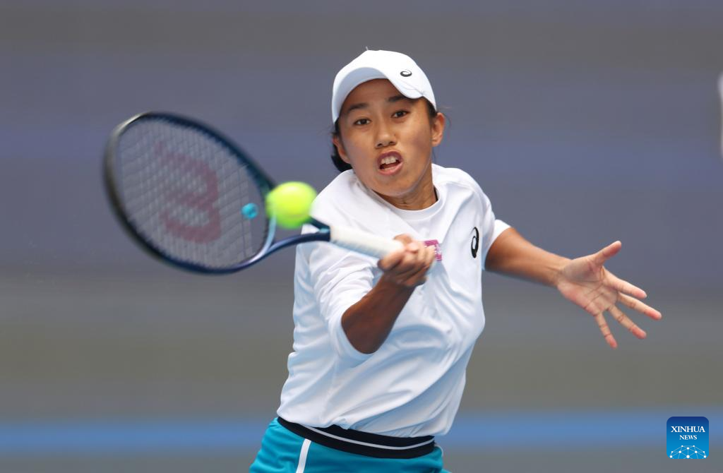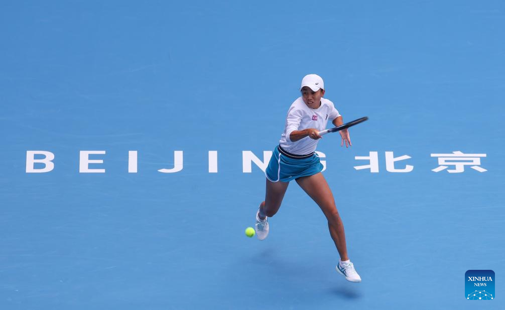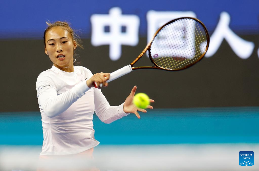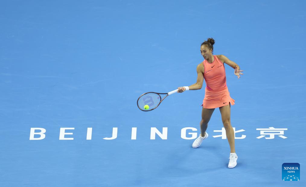 BEIJING, 2 octubre, 2024 (Xinhua) -- Zheng Qinwen devuelve la pelota durante el partido de octavos de final de individuales femeninos entre Amanda Anisimova, de Estados Unidos, y Zheng Qinwen, de China, en el torneo de tenis Abierto de China 2024, en Beijing, capital de China, el 2 de octubre de 2024. (Xinhua/Wang Lili)