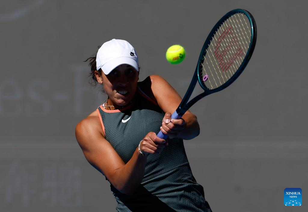 BEIJING, 2 octubre, 2024 (Xinhua) -- Madison Keys, de Estados Unidos, devuelve la pelota durante el partido de octavos de final de individuales femeninos entre Aryna Sabalenka, de Bielorrusia, y Madison Keys, de Estados Unidos, en el torneo de tenis Abierto de China 2024, en Beijing, capital de China, el 2 de octubre de 2024. (Xinhua/Zhang Long)