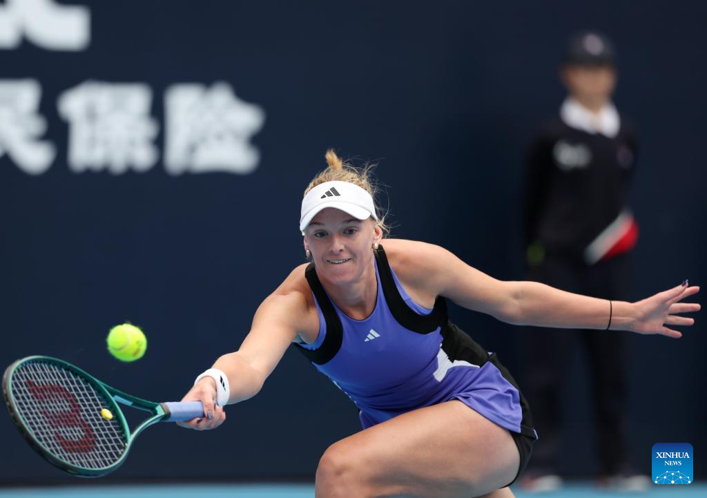 BEIJING, 2 octubre, 2024 (Xinhua) -- Karolina Muchova, de República Checa, devuelve la pelota durante el partido de octavos de final de individuales femeninos ante Cristina Bucsa, de España, en el torneo de tenis Abierto de China 2024, en Beijing, capital de China, el 2 de octubre de 2024. (Xinhua/Chang Nengjia)