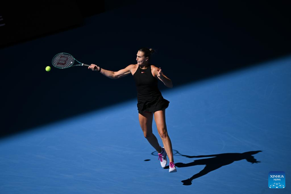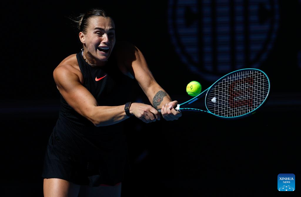 BEIJING, 30 septiembre, 2024 (Xinhua) -- Aryna Sabalenka, de Bielorrusia, devuelve la pelota durante el partido de la tercera ronda de individuales femeninos ante Ashlyn Krueger, de Estados Unidos, en el torneo de tenis Abierto de China 2024, en Beijing, capital de China, el 30 de septiembre de 2024. (Xinhua/Zhang Chenlin)