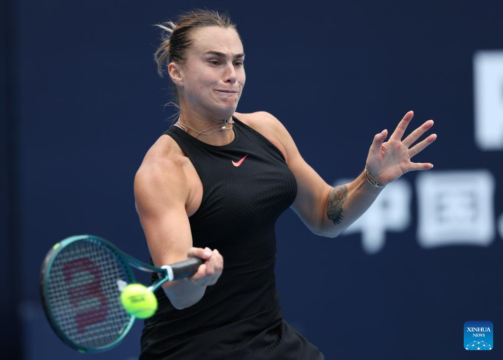 BEIJING, 2 octubre, 2024 (Xinhua) -- Aryna Sabalenka, de Bielorrusia, devuelve la pelota durante el partido de octavos de final de individuales femeninos entre Aryna Sabalenka, de Bielorrusia, y Madison Keys, de Estados Unidos, en el torneo de tenis Abierto de China 2024, en Beijing, capital de China, el 2 de octubre de 2024. (Xinhua/Zhang Long)