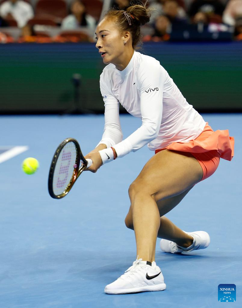 BEIJING, 1 octubre, 2024 (Xinhua) -- Zhang Shuai, de China, compite durante el partido de octavos de final de individuales femeninos ante Magdalena Frech, de Polonia, en el torneo de tenis Abierto de China 2024, en Beijing, capital de China, el 1 de octubre de 2024. (Xinhua/Bai Xuefei)