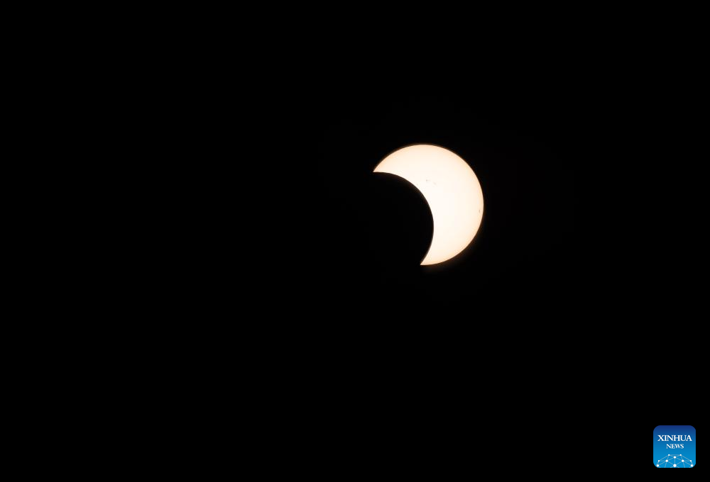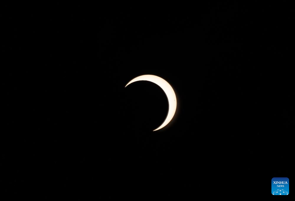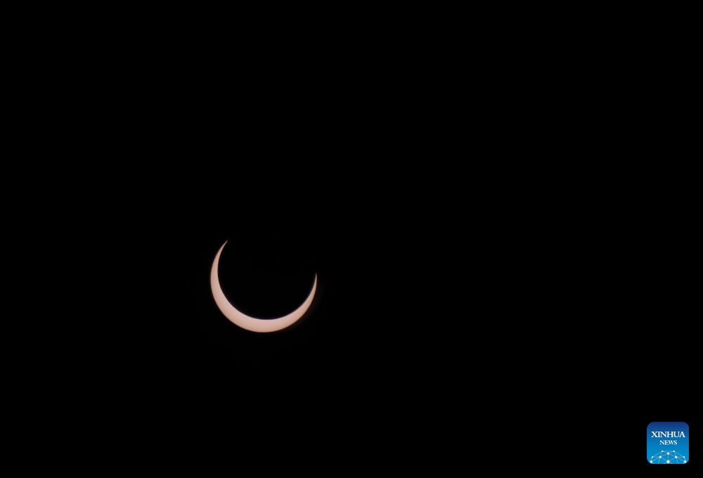 ISLA DE PASCUA, 2 octubre, 2024 (Xinhua) -- Imagen del 2 de octubre de 2024 de una fase del eclipse anular de sol, en la Isla de Pascua, Chile. (Xinhua/Str)