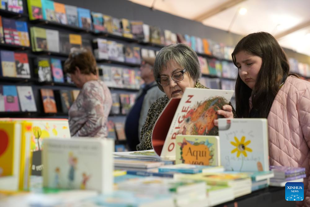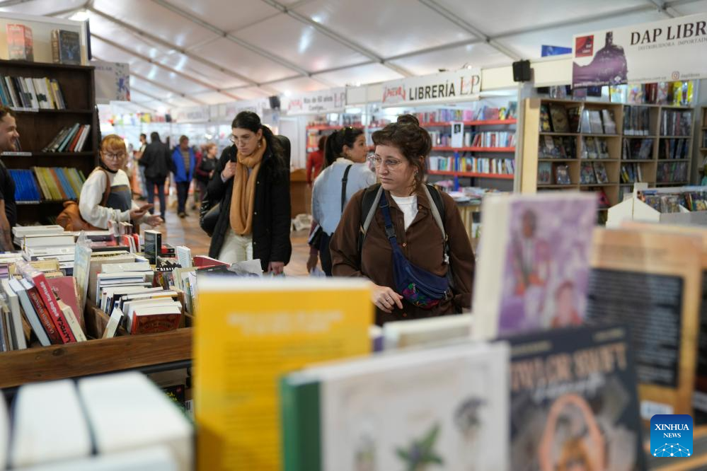 MONTEVIDEO, 3 octubre, 2024 (Xinhua) -- Visitantes observan libros en un estand durante la 46ª Feria Internacional del Libro de Montevideo, en Montevideo, capital de Uruguay, el 3 de octubre de 2024. (Xinhua/Nicolás Celaya)